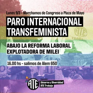 - Lunes 9/3: Paro Internacional Transfeminista