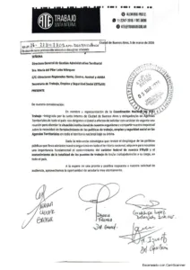 Compartimos con nuestros compañeros y compañeras de todo el país la Nota de solicitud de reunión, en carácter de urgente,… - Repudio a la represión policial en las puertas de la Secretaría de Trabajo