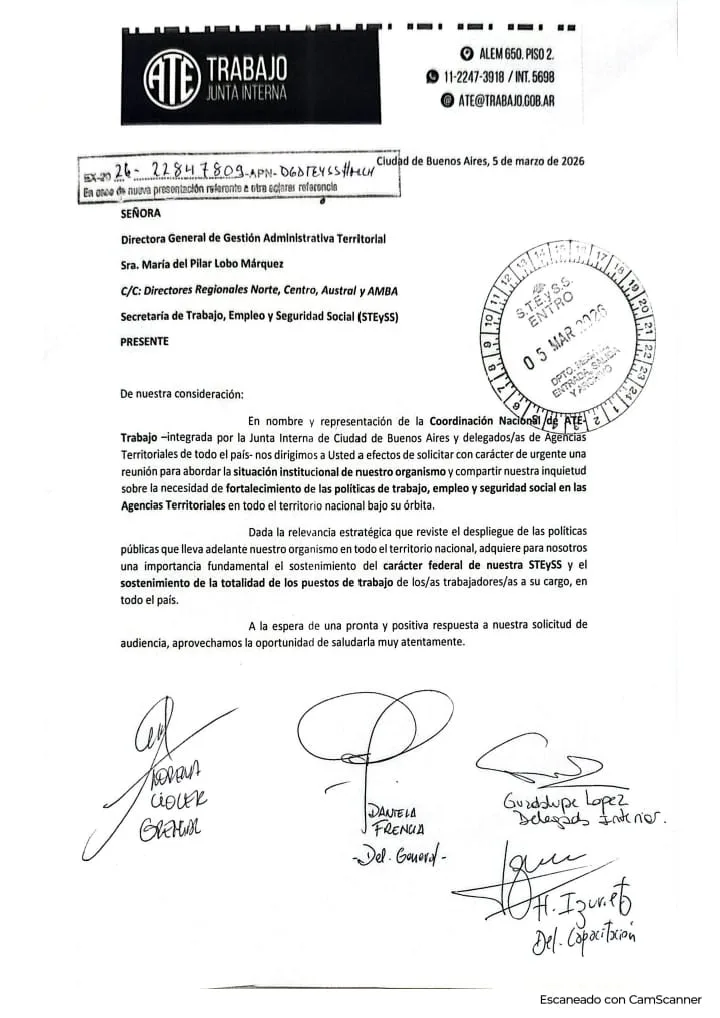 - Pedido de reunión urgente a la Directora de Gestión Administrativa Territorial